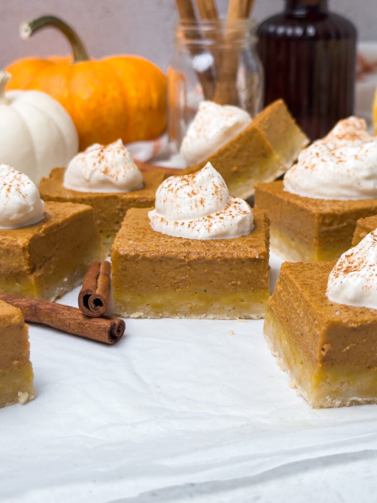 These Pumpkin Pie Bars have a buttery shortbread crust topped with a…