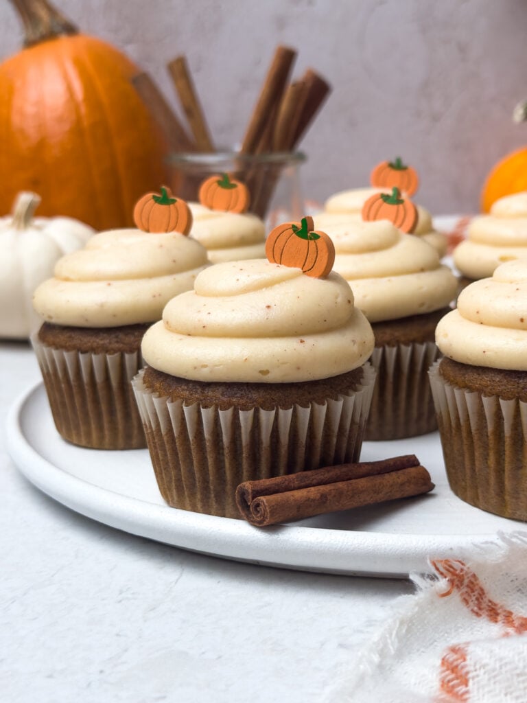 These Pumpkin Cupcakes are soft, tender, and topped with luscious brown butter…