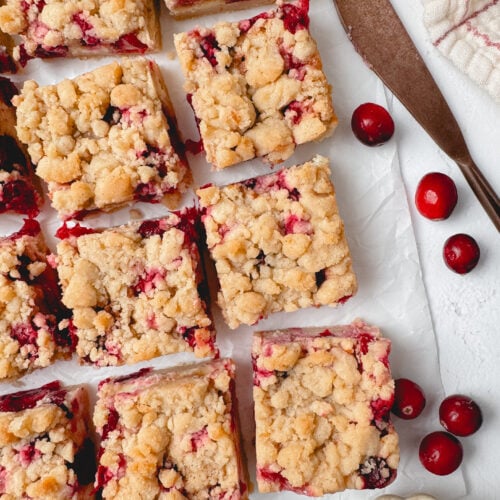 Either fresh or frozen cranberries will work in this recipe. I like to stock up on fresh cranberries when they’re in season and freeze them so you have them on hand and can make these cranberry bars any time of year!